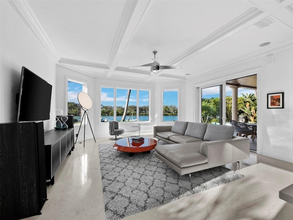 Longboat Key Waterfront Estate Lifestyle Unrivaled in privacy, craftsmanship, and waterfront lifestyle, this gated Lighthouse Point residence lives like a grand coastal estate, with 4 Bedrooms, 4-1/2 Baths, and nearly 5, 000 square feet of refined interiors opening to sweeping terraces on two levels and serene views over a secluded, bridgeless-access lagoon leading directly to the Gulf of Mexico. Extensively renovated in 2021, the two-story Mediterranean-inspired home blends timeless architecture with a sophisticated contemporary aesthetic, framed by manicured tropical grounds on over one-third of an acre in one of Longboat Keys most exclusive enclaves. Dramatic Arrival & Entertaining Spaces A soaring central foyer with coffered tongue-and-groove ceiling, arched French casement doors, and an elegant wraparound catwalk establishes a dramatic sense of arrival while capturing water, sky, and lush landscaping in every direction. The main living area is designed for effortless entertaining, with a sleek wood-and-stone feature wall, modern fireplace, and sculptural Tom Dixon lighting flowing through expansive glass sliders to the waterfront terrace and saltwater pool and spa. Gourmet Kitchen & Waterfront Lounge The fully reimagined Cucina Ricci kitchen serves as a chefs workspace and social hub, with minimalist custom cabinetry, a generous island with seating, and an ultra-premium Miele VitroLine suite including double ovens, induction cooktop, and integrated coffee station. Just beyond, a waterfront lounge or media den opens directly to the covered loggia, creating a seamless indoor-outdoor living experience enhanced by an integrated Yamaha sound system for both interior and exterior zones. Owners Retreat & Guest Level Perfectly positioned for privacy, the main-level owners retreat is a secluded sanctuary with its own hallway entrance, multiple terrace access points, tray ceiling, recessed lighting, and windows on three sides framing tranquil water views. The suite is completed by dual renovated walk-in closets and a spa-inspired bath with oversized vanities, private water closet, and expansive walk-in shower with rain head, while upstairs three en suite guest suites and a mezzanine den provide luxurious accommodations and flexible space. Resort-Caliber Grounds & Boating Outside, meticulously lit landscaping, a travertine-framed saltwater pool and spa, and a private dock with 14, 000 lb lift, new motors, and enhanced WiFi create a turnkey boating haven with immediate access to Sarasota Bay and the Gulf. Practical amenities include whole-house Kohler generator, hurricane protection, impact glass, large utility room with dual Sub-Zero wine refrigerators, and an oversized three-car garage with EV charger wiring. Premier Longboat Key Location Set behind the gates of Lighthouse Point, residents enjoy private tennis, a serene low-density streetscape, and a short walk to the beach. The address is just minutes from the Longboat Key Clubs golf and tennis, the boutiques and restaurants of St. Armands Circle, and the cultural attractions of downtown Sarasota. Call to Experience This Estate Schedule your private showing of this Lighthouse Point waterfront estate today to experience the scale, privacy, and curated luxury that define one of Longboat Keys most coveted addresses. For additional details and a private tour, contact the listing agent to arrange an exclusive, by-appointment-only viewing.